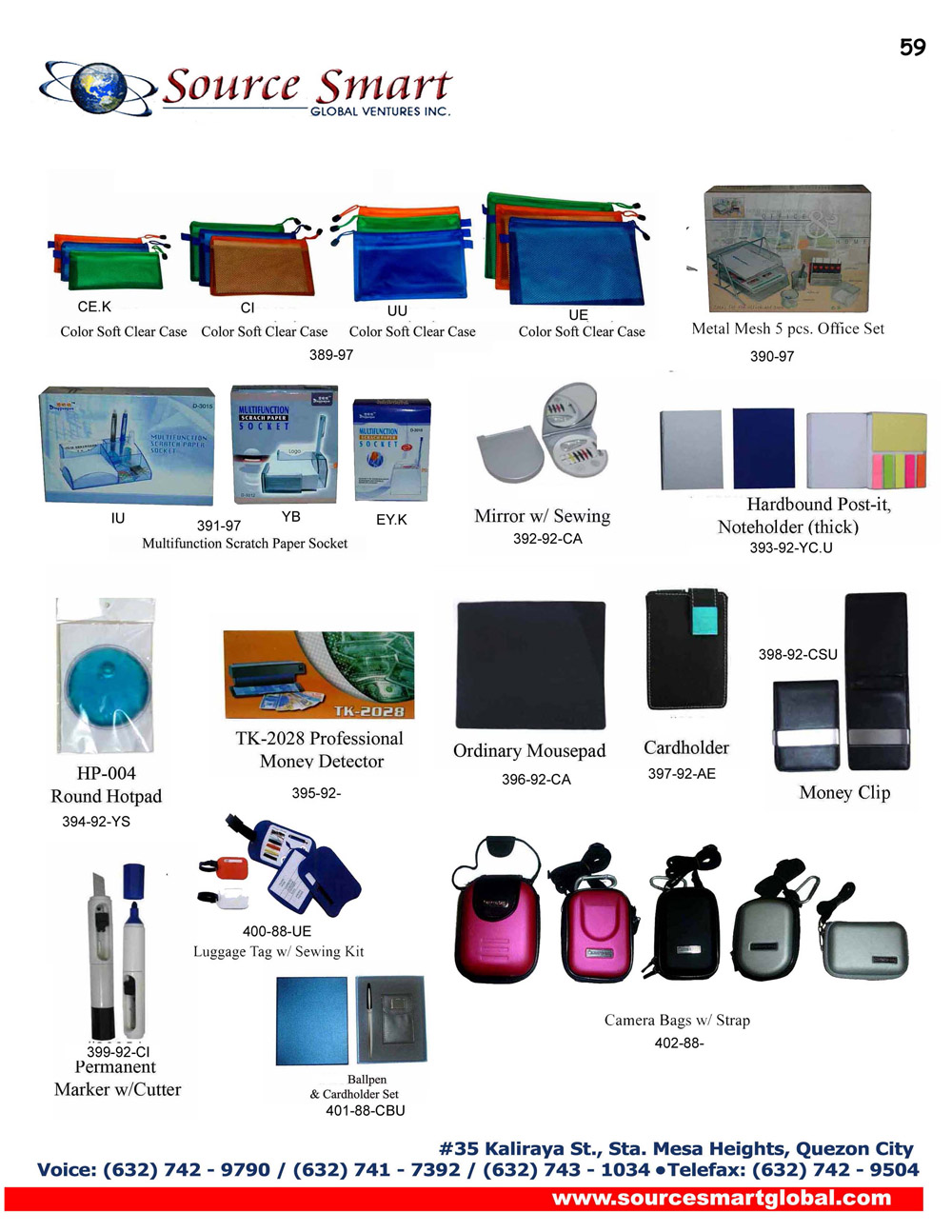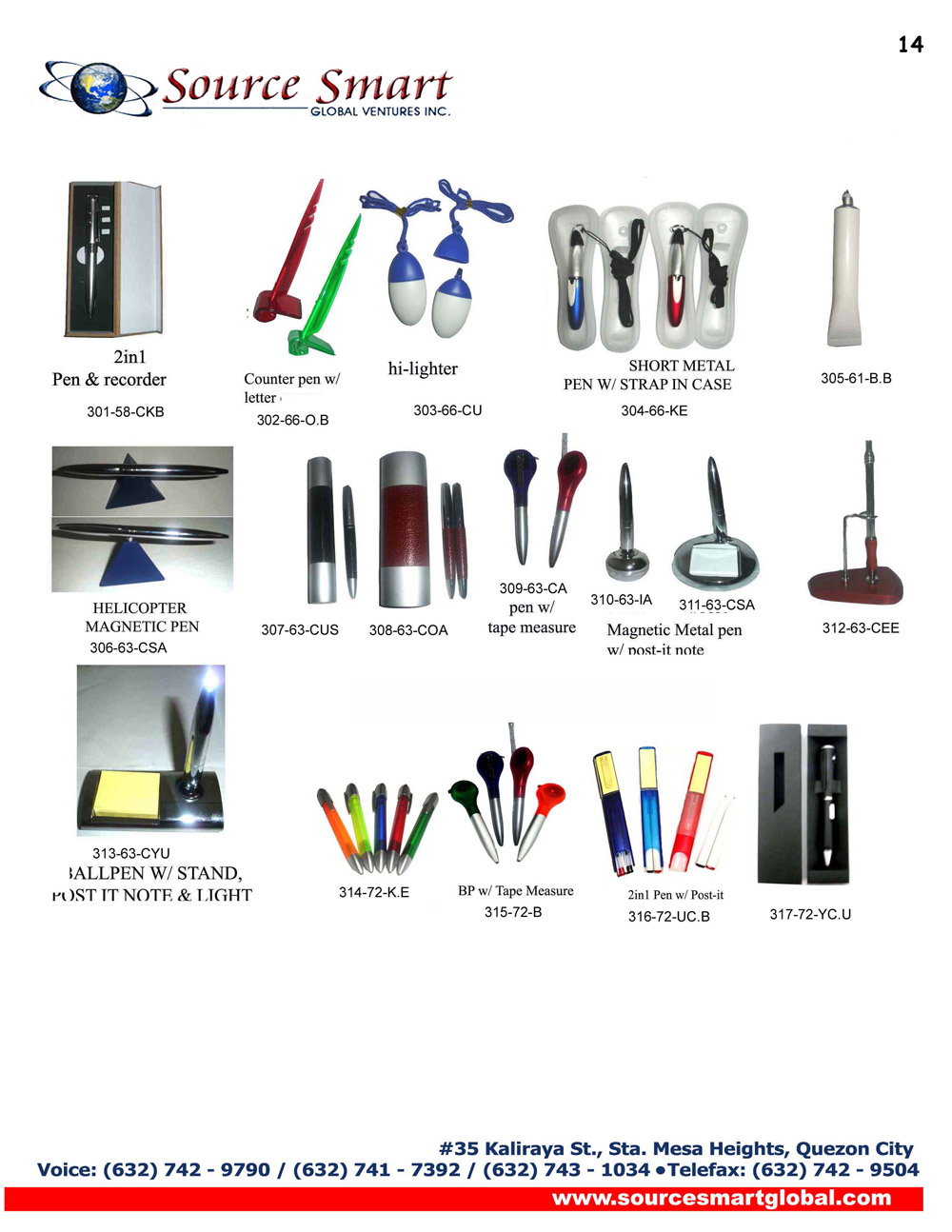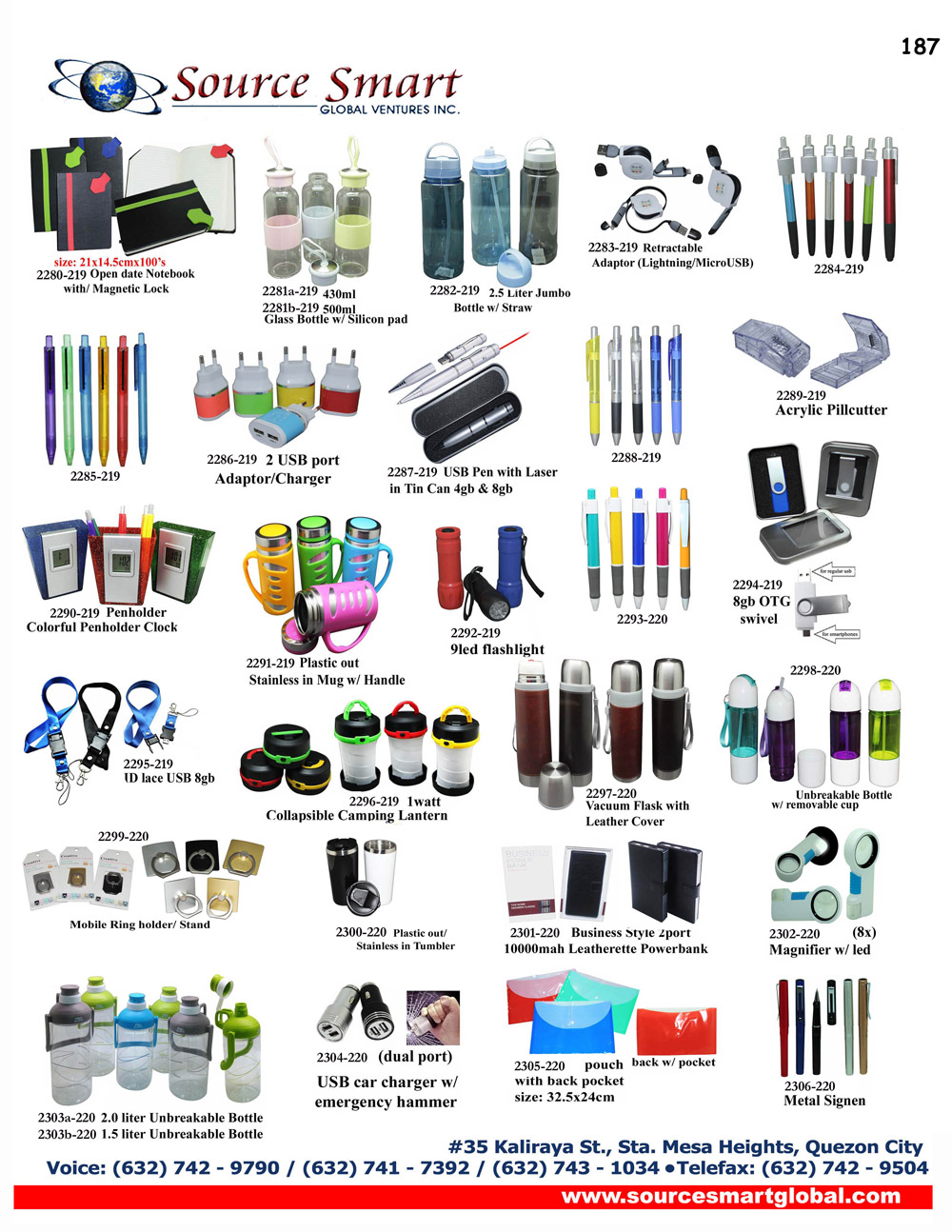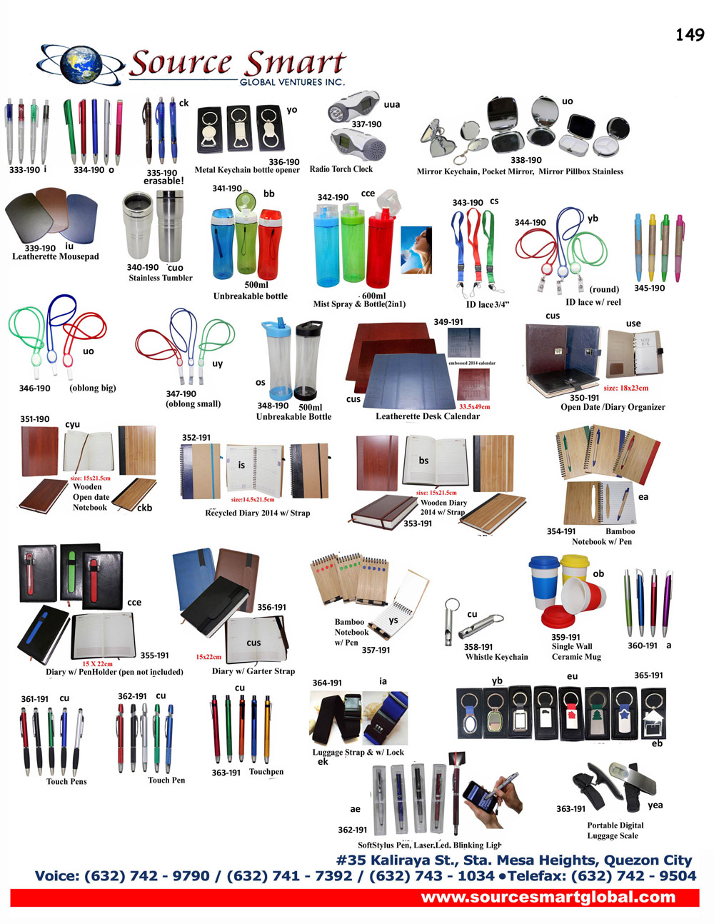 Source Smart Global Venture Inc. is a marketing service and support company focused on providing corporate giveaways, promotional items, advertising and design services, outdoor transit ad service, website design and development, as well as audio and video production, conceptualization and editing services to companies of various industries.